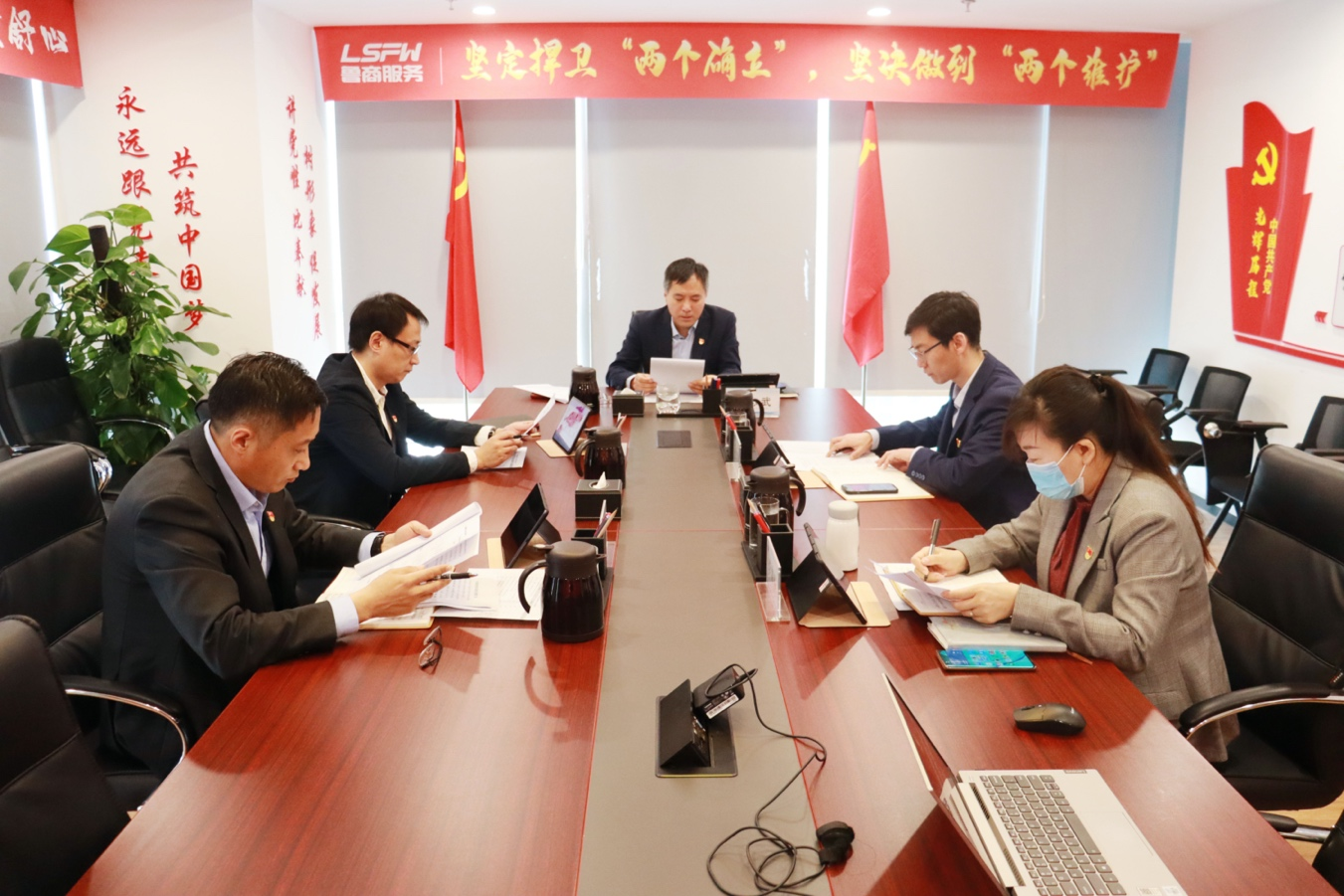 會議指出,公司黨委班子成員要帶頭抓好理論學(xué)習(xí),每名班子成員要到聯(lián)系點黨支部講黨課,引導(dǎo)廣大黨員干部深刻領(lǐng)悟習(xí)近平新時代中國特色社會主義思想的真理力量和實踐偉力,不斷增進(jìn)對黨的創(chuàng)新理論的政治認(rèn)同、思想認(rèn)同、理論認(rèn)同、情感認(rèn)同,切實把“兩個維護(hù)”內(nèi)化于心、外化于行;廣大黨員干部要堅持問題導(dǎo)向、深入查擺問題,推動工作不斷向前發(fā)展,持續(xù)在完善標(biāo)準(zhǔn)、制度、流程、規(guī)范基礎(chǔ)工作上下功夫,持續(xù)在利用數(shù)字化改造提升服務(wù)品質(zhì)上下功夫,持續(xù)在塑造高端物業(yè)品牌形象上下功夫,為完成全年目標(biāo)任務(wù)奠定堅實基礎(chǔ);要緊跟山東發(fā)展大局,全面推進(jìn)“治理結(jié)構(gòu)和人才結(jié)構(gòu)雙優(yōu)化、管理質(zhì)效和服務(wù)品質(zhì)共提升、產(chǎn)業(yè)協(xié)同和業(yè)務(wù)模式謀創(chuàng)新、服務(wù)鏈探索和數(shù)字化賦能同升級”等重點工作,努力夯根基、塑品牌、謀發(fā)展、提效益、控風(fēng)險、增活力,力求在物業(yè)管理上構(gòu)建新格局、實現(xiàn)新突破,為更好推動公司高質(zhì)量發(fā)展再建新功。