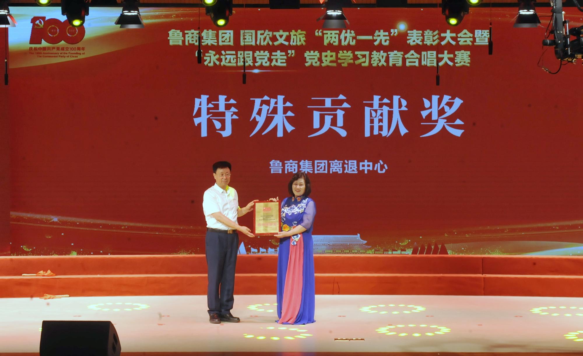 為慶祝中國共產黨成立100周年,6月23日,魯商集團 “兩優一先”表彰大會暨“永遠跟黨走”黨史學習教育合唱總決賽舉行。魯商集團黨委書記、董事長兼國欣文旅黨委書記、董事長高洪雷出席活動并講話。