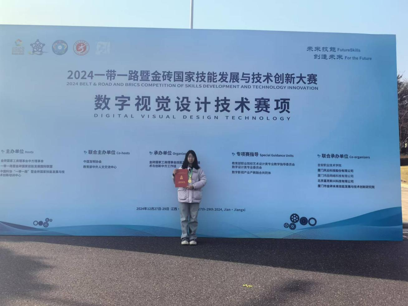 近日,2024年一帶一路暨金磚國家技能發(fā)展與技術創(chuàng)新大賽數(shù)字視覺設計技術賽項(高職組)國內(nèi)總決賽順利舉行。山東城市服務職院學生郭冰琛憑借出色的技能和創(chuàng)新能力,斬獲數(shù)字視覺設計技術賽項國賽一等獎。