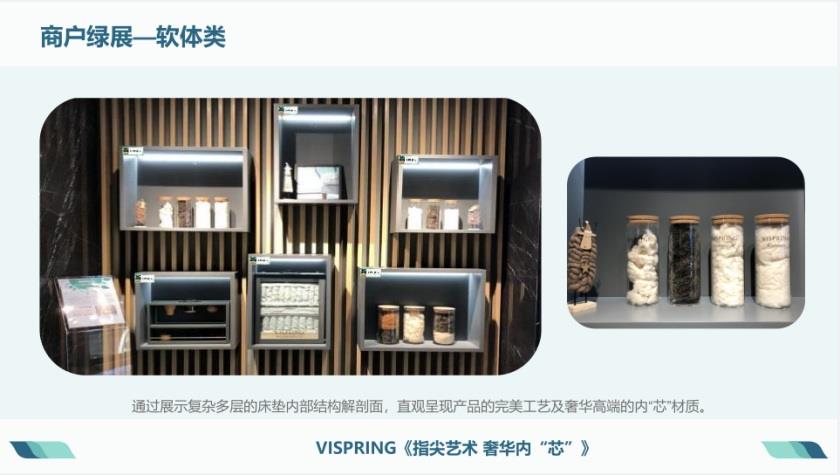 截至目前累計打造綠展點位268處,其中優(yōu)秀展陳31個品牌,通過綠色展陳助力商戶成交落單轉(zhuǎn)化680萬元。